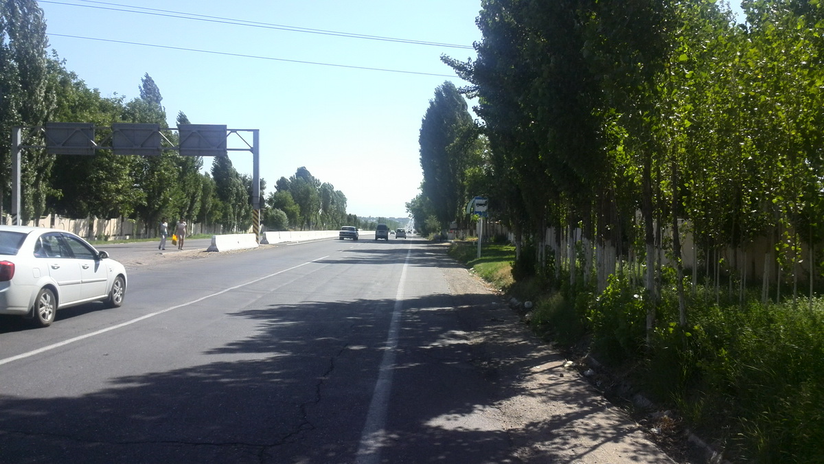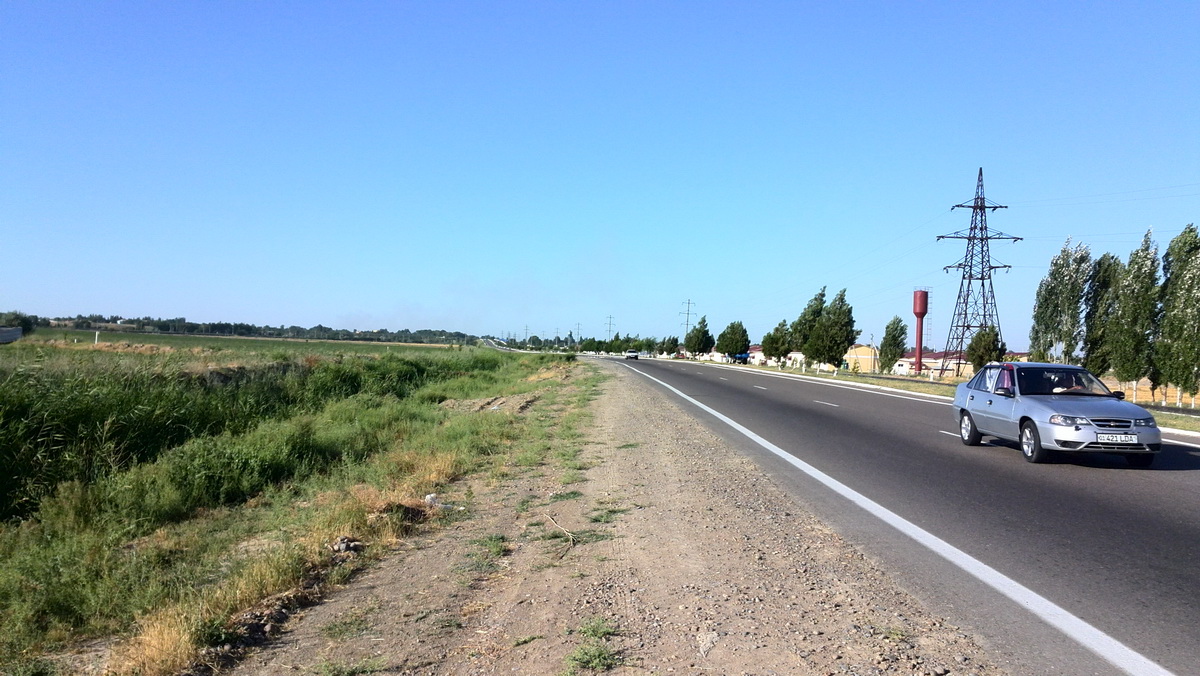 Качество дороги в Ташкентской области стабильно хорошее. Дорога и без ям, и практически без поворотов — руль будто совсем не нужен.