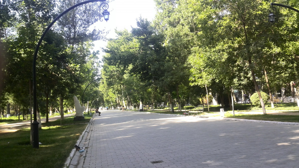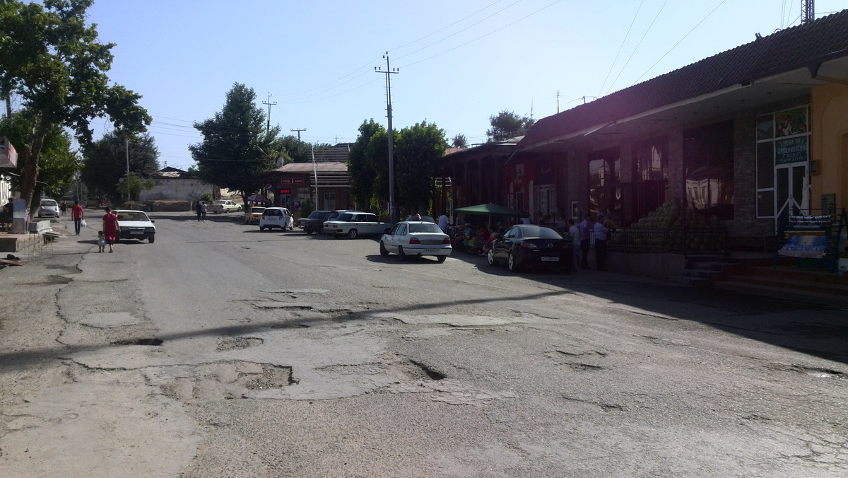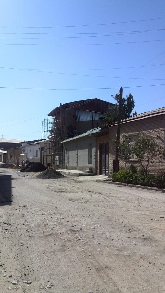 Итак, город, а вернее — улочки, на которых я побывал. Они показались мне какими-то очень песочными и жутко однообразными. Пошёл по махалле, хотя дорога была большой (возможно, это и не было махаллёй в нашем понимании). Ощущение, что все строятся. Чуть ли не в каждом втором доме идут строительные работы. Что-то кладётся, что-то штукатурится. Прямо ощущение, будто всех узбеков выгнали из России и они от безделья занялись стройкой.