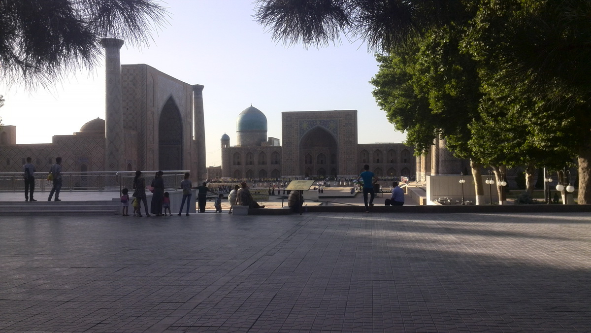 Потихонечку добрался я до комплекса Регистан. На нём репетировались танцы. Очень много людей. На заднем фоне молодые люди делают волну, на переднем — девушки танцуют что-то интересное. Мне нравится узбекский танец — в нём очень много символов и значений. Был у них и главный, что позволял себе такие выражения: «Так, так... понятно... теперь давайте посмотрим это безобразие...». Он сидел в будке руководителей и был из неё очень недоволен. А у меня крутилась мысль: будь я на их месте, послал бы я тебя куда подальше уже очень давно. Долго сидел, а они всё плясали. Я доел самсу, купленную по пути, и решил, что нужно купить ещё одно мороженое. Стаканчик вкуснейшего мороженого — всего за 1000 сум (22 цента). Не удивительно, что я туда ходил раза четыре.