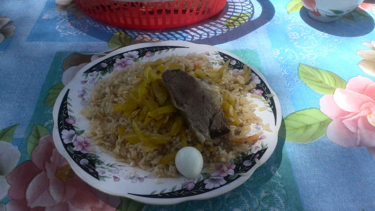 И наконец-то я нашёл обычную чайхану, где задёшево меня накормили вкусным пловом, которого мне хватило и на обед, и на ужин).
