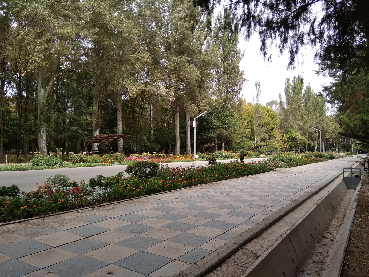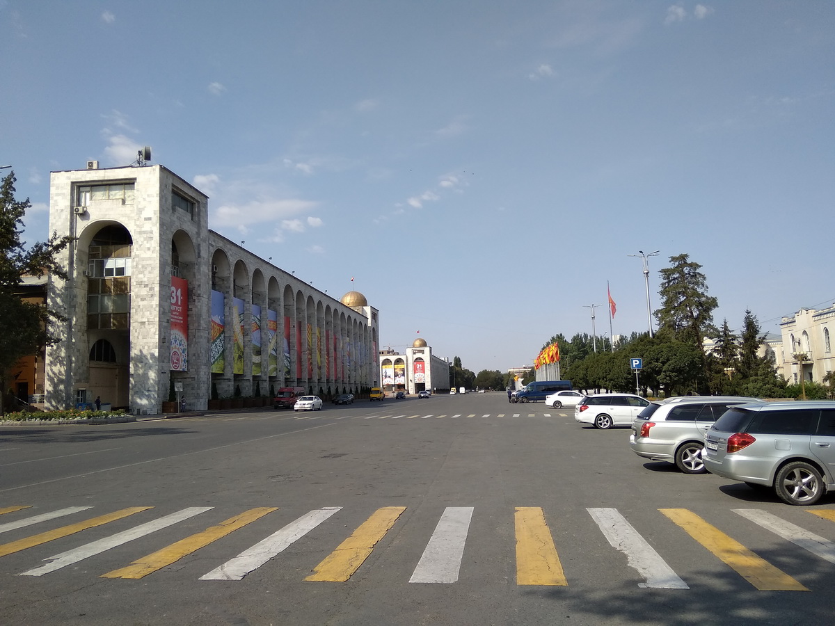 На обратном пути мы тоже гуляли по городу. И в целом я могу сказать, что центр города Бишкек мне очень понравился. Очень аккуратно и приятные люди, довольно много людей. Киргизки прям симпатичные, я и не думал даже. Хотя большинству кажется не больше 20 — может, после они уезжают в обязательном порядке, не знаю. Особенность ещё в том, что девушки не отводят взгляда, и это очень приятно. Также говорят, что они очень легко общаются, но я как-то не проверил). Пацанов будто совсем мало, ну или я на них не обращаю внимания. Центр весь такой живой, но маленький — чуть ли не два-три перекрёстка. Как-то мало для столицы.