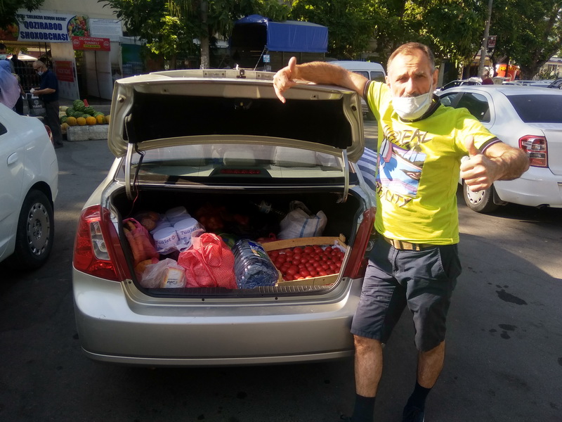 И вот мы уже на базаре. В Ташкенте очень легко найти еду вегетарианцу. Два часа (ну или чутка больше) — и все продукты куплены и помещены в машину.