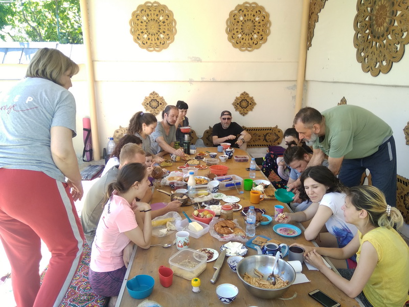 После — немного свободного времени, небольшая медитация и отход ко сну. Спали кому как удобно. Кто на кроватях внутри дома, которых не так много. Кто просто на курпачах (узбекские такие матрацы) на полу. Кто в спальниках на улице. Лето в этом году не такое жаркое, было слегка прохладненько, но в целом ночь прошла хорошо.