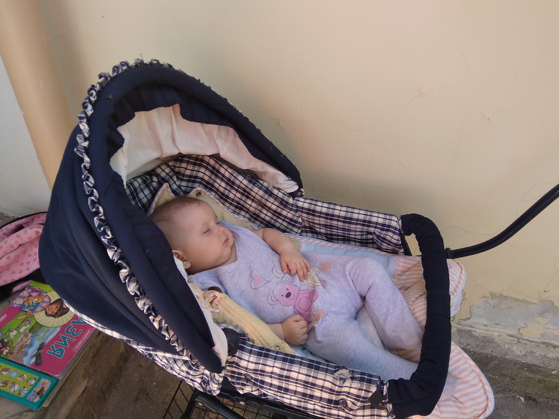 Дети себя вели хорошо, почти не отвлекали мам (хотя, возможно, я не всё знаю). Кто-то играл, осваивал бассейн, кто-то катался почти на всех ручках присутствующих участников. Особо понравилось то, что сразу организовалась поддержка в вопросе детей, и все готовы были помочь в чём угодно, даже отказаться от медитации, чтобы покачать ребёнка в коляске.